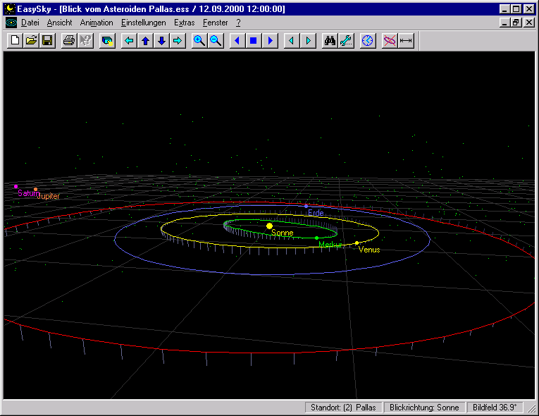 Blick vom Asteroiden Pallas auf das innere Sonnensystem